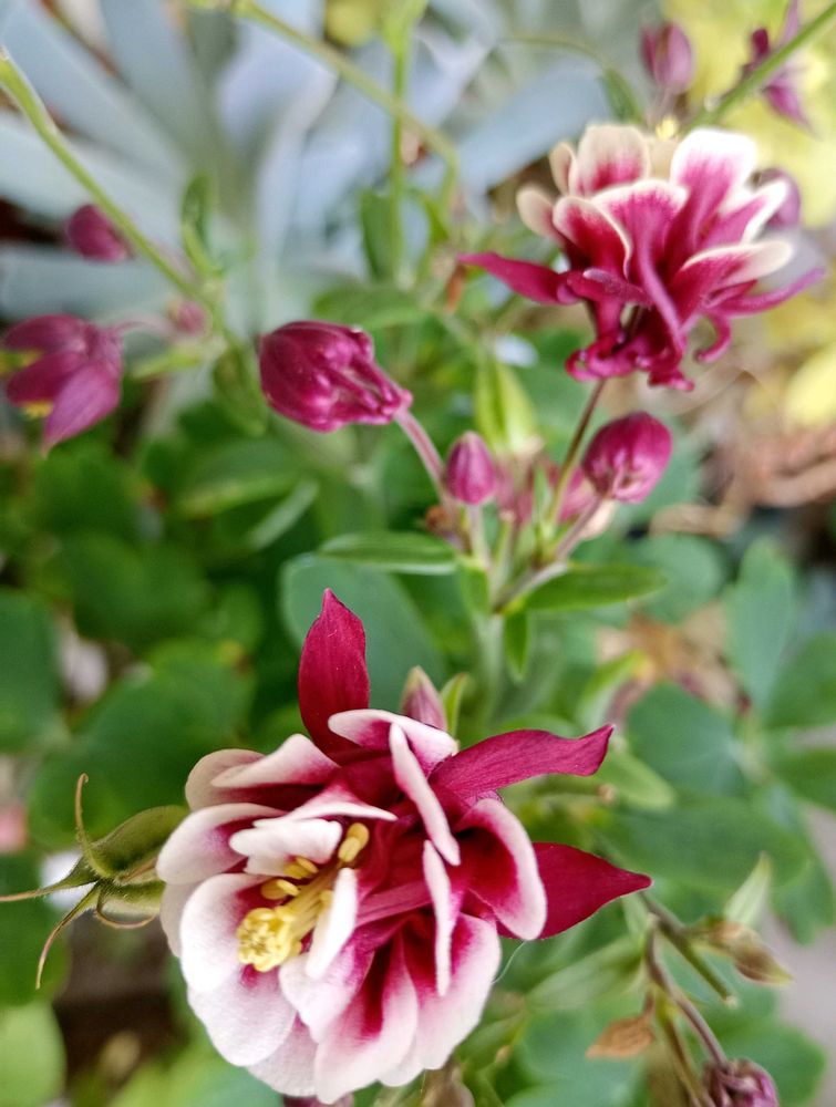 西洋オダマキ名無しの子、花後✂️したら二番花が次々に咲き出して〜🥰⑤