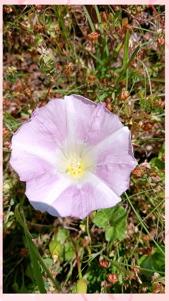 朝顔のような花なのですが 蔓は見られなかったようで 地面にポツポツ ポツポツと咲いていました。場所は空き地です。