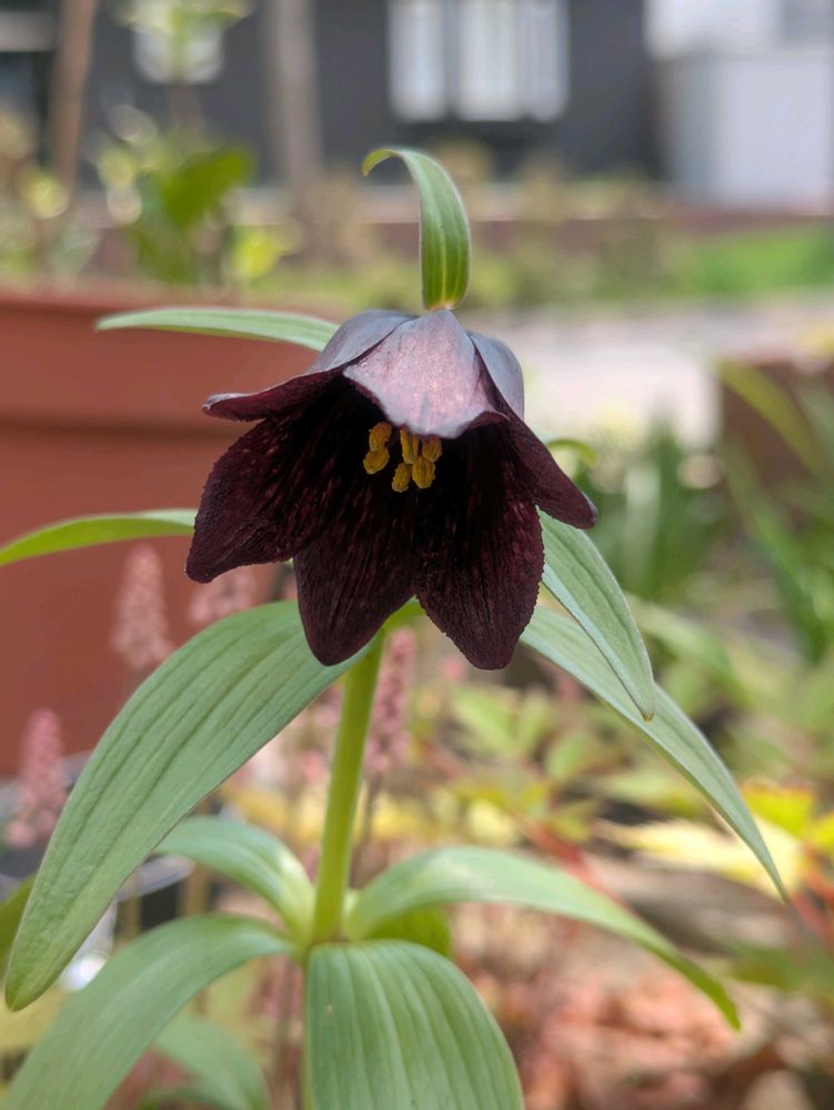 ①クロユリは鉢を持上げて📸パチリ