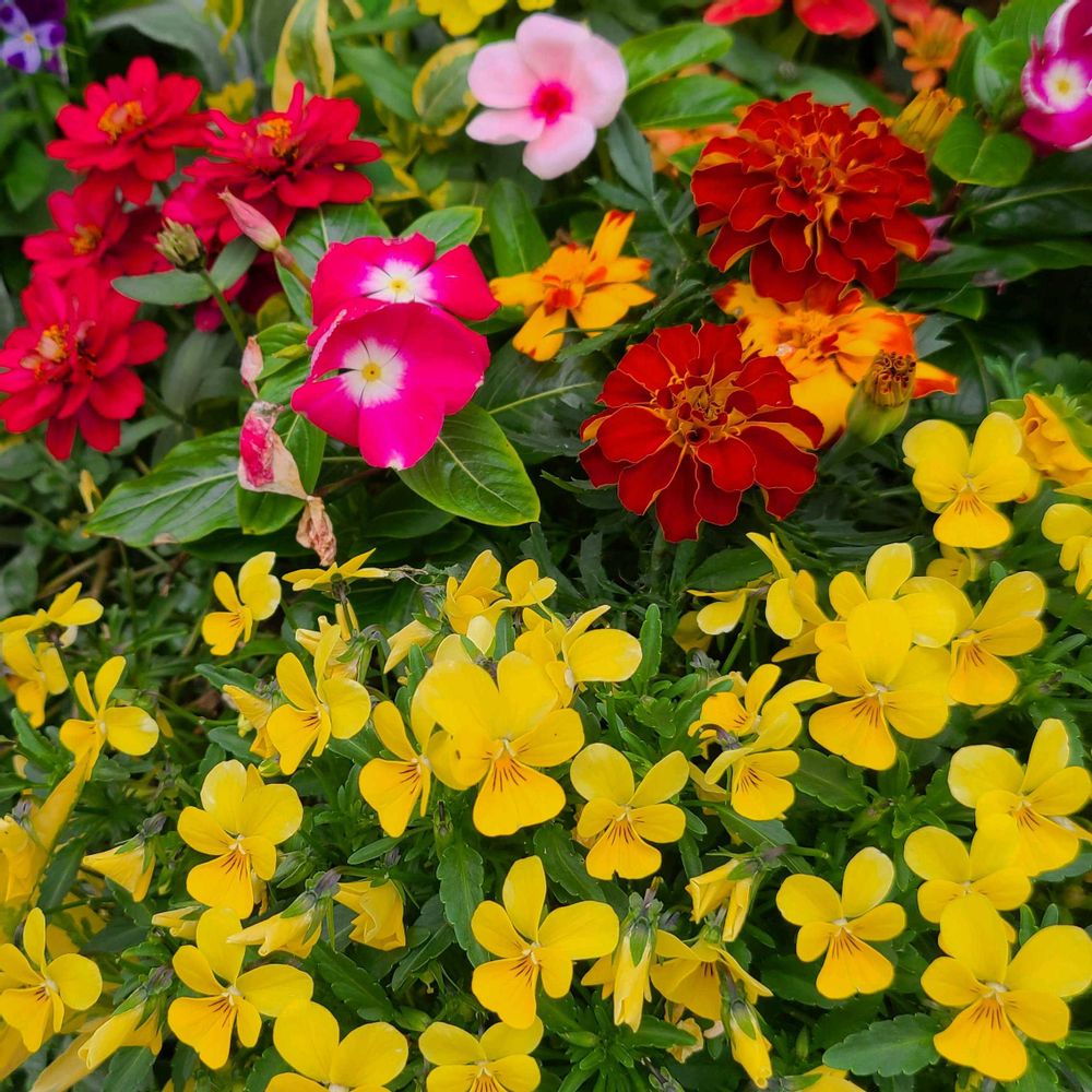 残ったビオラ💠💛💛の鉢に夏花をイン‼️昨夜から雨☔でもまだ頑張って咲いてくれてるビオラ💠いつまで頑張れるかな(^-^)👍️