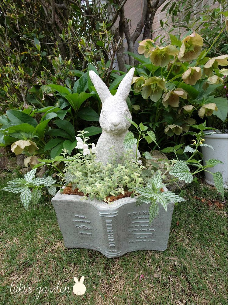 本日の📷投稿は、月ちゃん🌛もお気に入りのうさぎさん鉢🐰(庭のクリスマスローズの前で先週📷撮影)