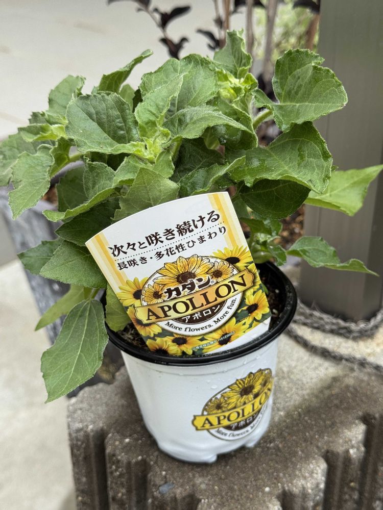 はじめまして、全く同じひまわり(アポロン)2年前にもらって育てました!7号の鉢で、本当に秋まで次々咲い暮れました💞楽しみですね。
