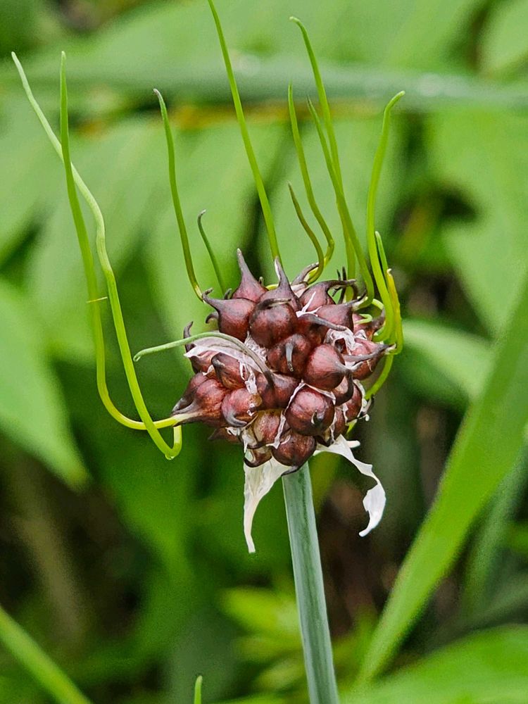 ノビルは花から種子ができるのはごく稀らしく この株のように花が咲かなくても珠芽から芽が出れば繁殖には差し支えないといいます