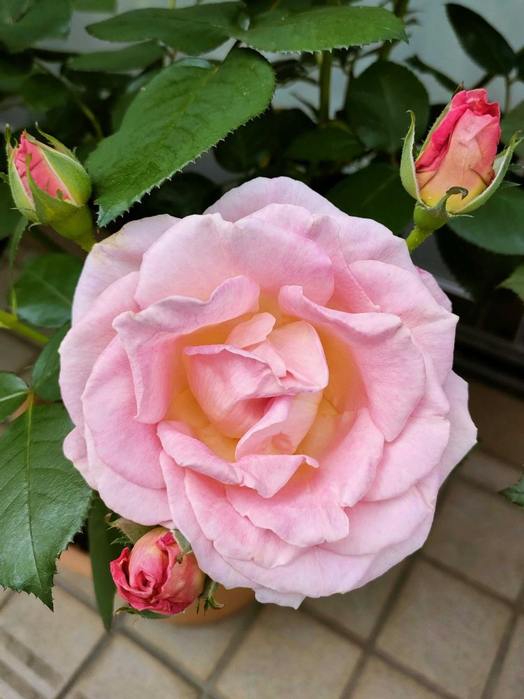 1️⃣2️⃣薔薇 Elle エルのオレンジ味をおびたピンクの花弁に、気持が明るくなります🩷今年は大輪です💓