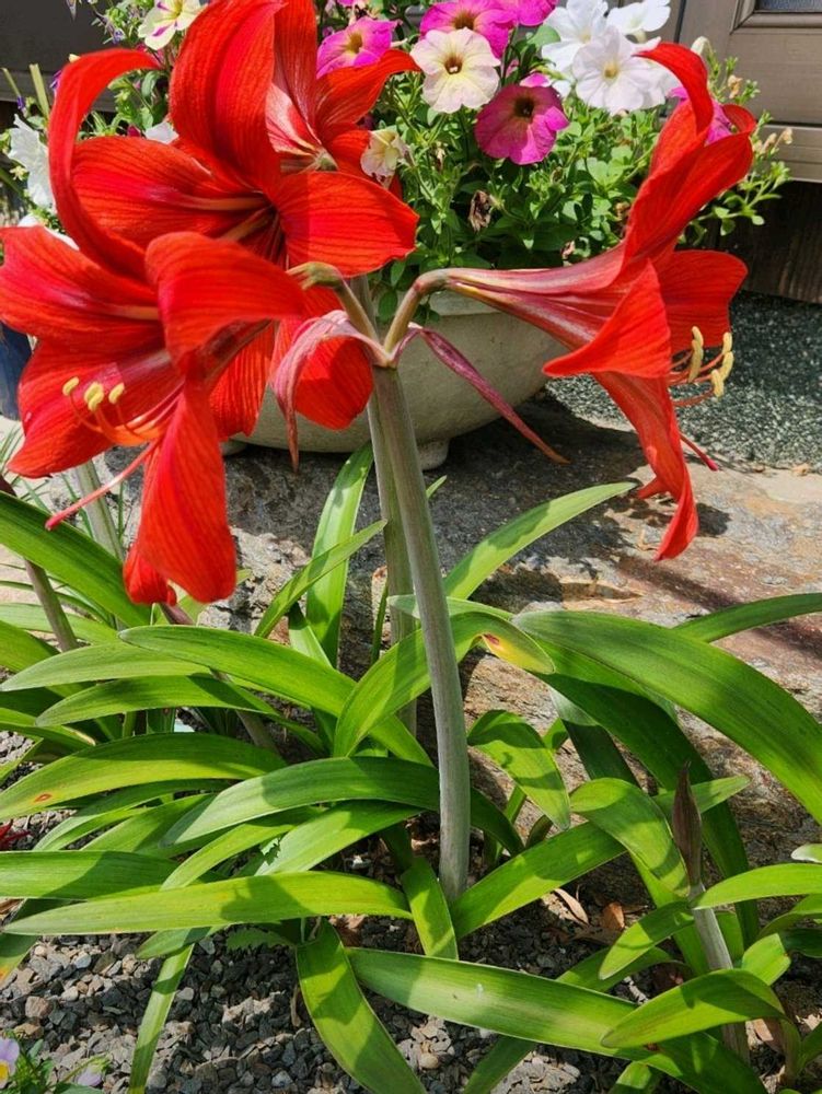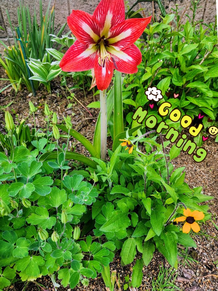 ぱっと‼️咲いてました🤭アマリリス🎵綺麗❣️