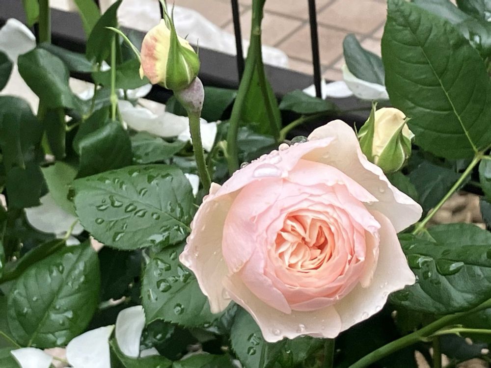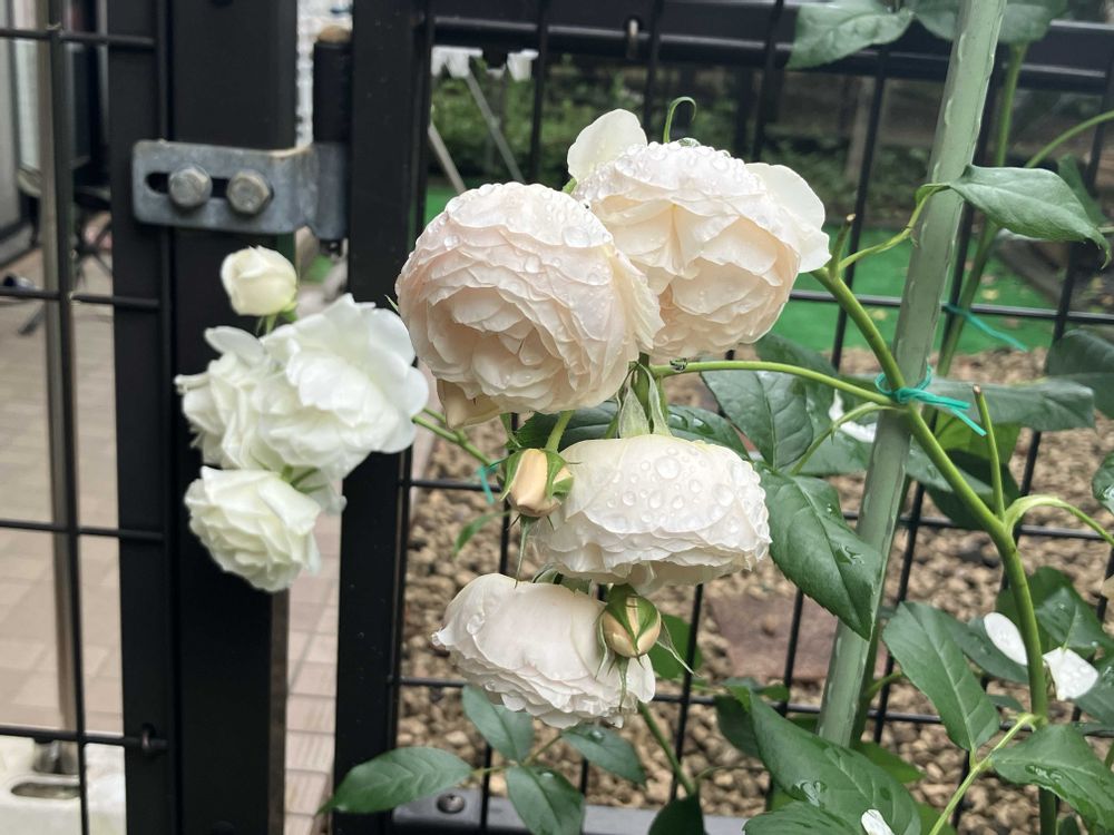 薔薇🌹は雨で折れたり散ったりでお隣の庭に花びらが散って