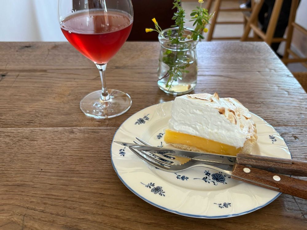 ⑤時々行くカフェでロゼワイン🍷とメレンゲレモンパイ
