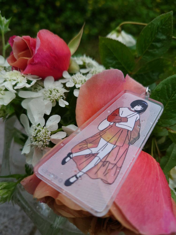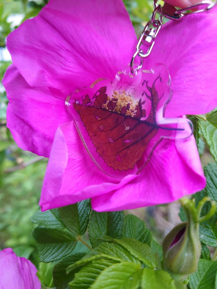 5️⃣ハマナスと🌿葉っぱアートキーホルダー