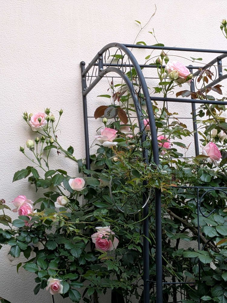 つる薔薇と知らずに数年前にお迎えしてびよ〜んと伸びて巻き付けることも出来ず🤣の状態だったんです。
