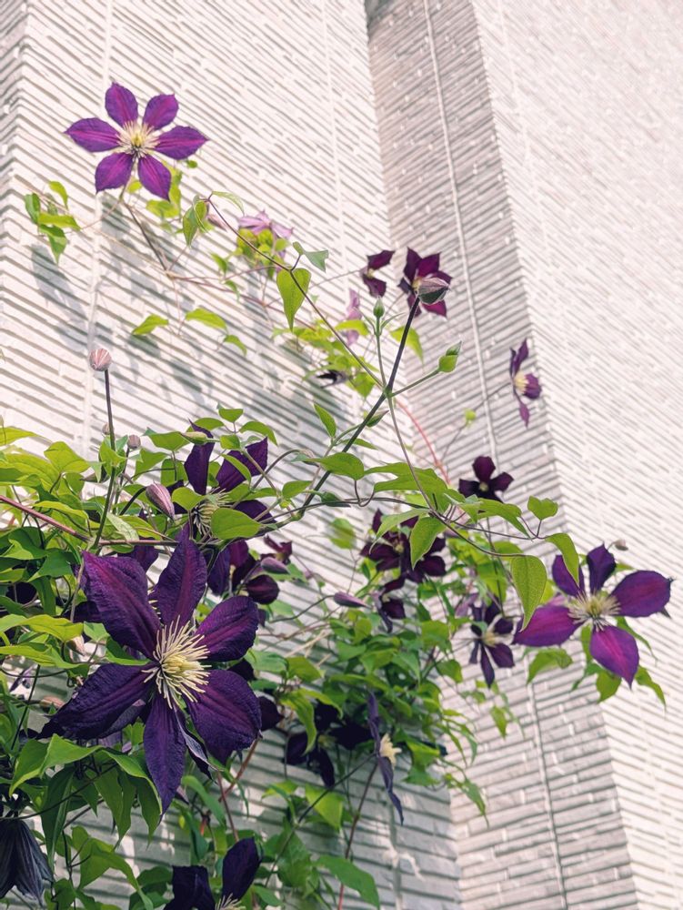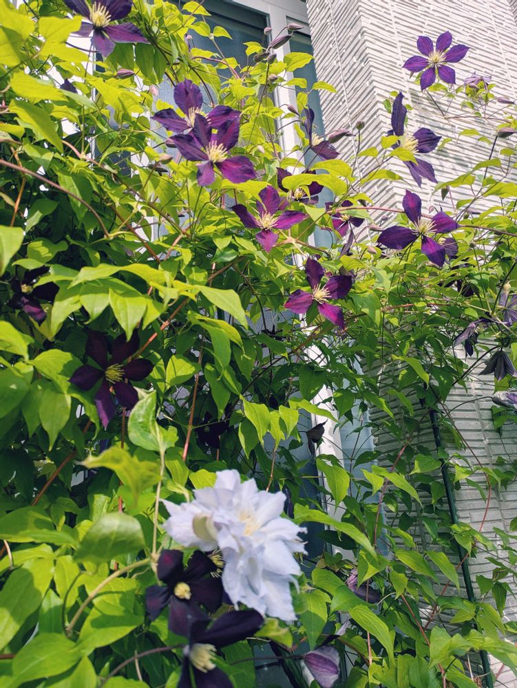 ミケリテの色が家の壁の色にとても映えて、よく考えずに半額苗だったからとこの種類を選んだ過去の自分を褒めたいと毎年思います。