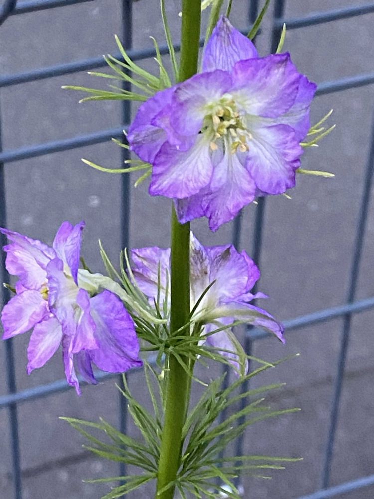 1月の松フラのセールでお迎えした千鳥草(ラークスパーファンシーパープルピコティ)が開花しました😊