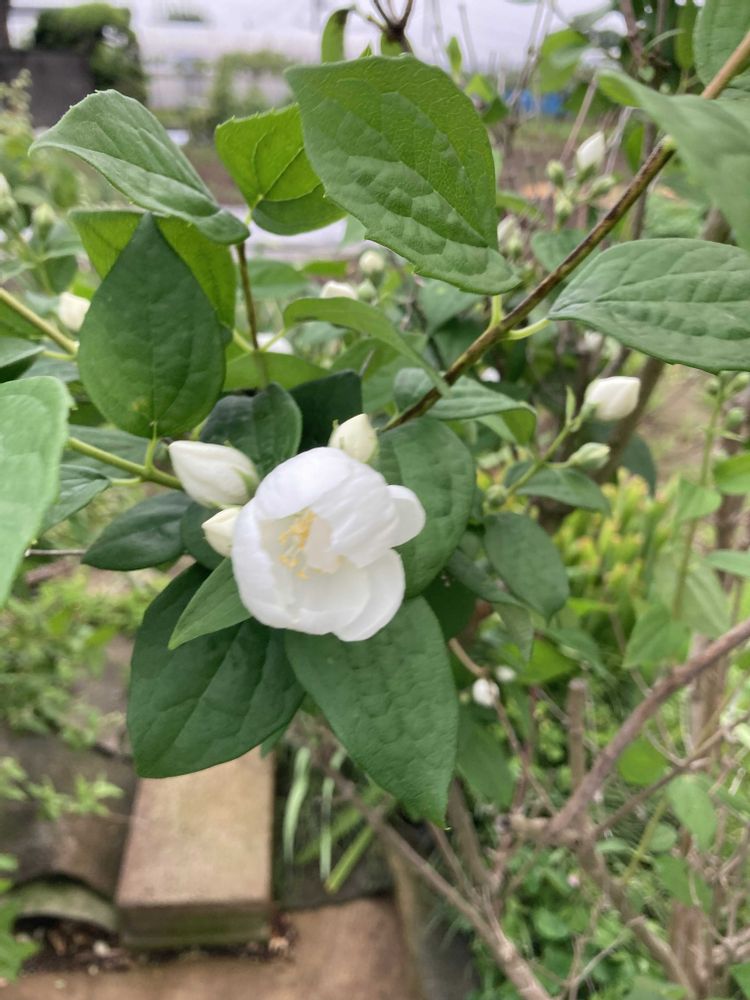 検索してみたら「バイカウツギ」らしい。 初めて見たような気がする。
