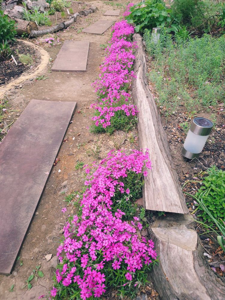 庭の小道改造計画…伸びた苗を少しずつ移植して増やしてきた芝桜がついに開花🌸