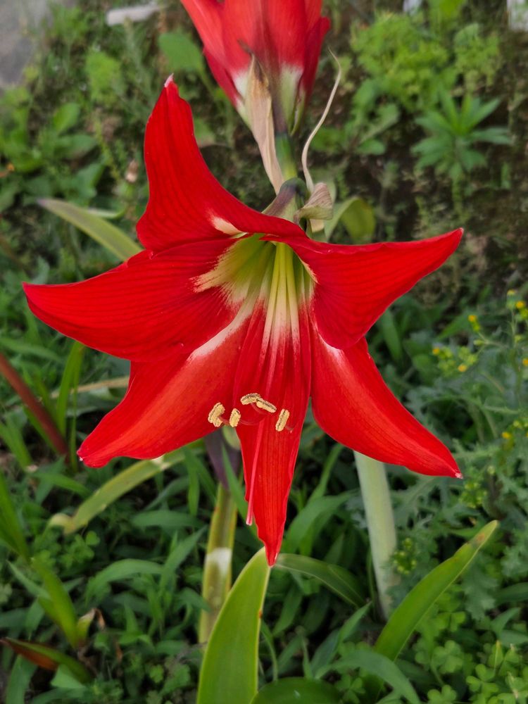 葉の質感と蕾の雰囲気が原種アマリリスのオーリクムに似ている気がするので交配親に使われているんでしょうかね~。