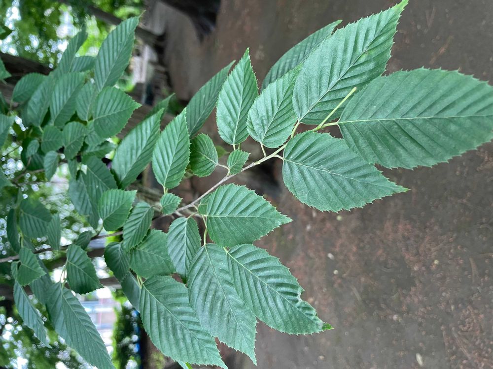 東京撮影。葉の一枚の大きさは10cmいかないぐらいです。樹皮には縦縞がはいっていました。よろしくお願いします。