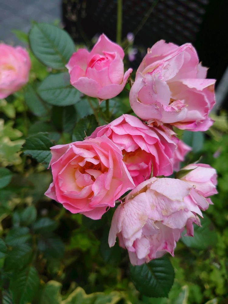 ピンクのミニバラ🌹🩷のおかげで施設の玄関前は明るいです😊皆んなを笑顔にしてくれてます😃💕