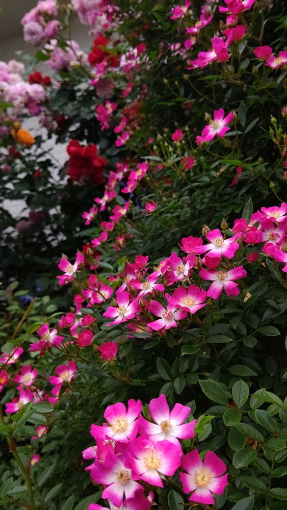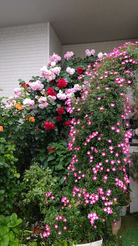 安曇野🌹可愛らしいお花が沢山咲きましたね〜💓すごく高さがあって薔薇のタワーのようになってます☺️