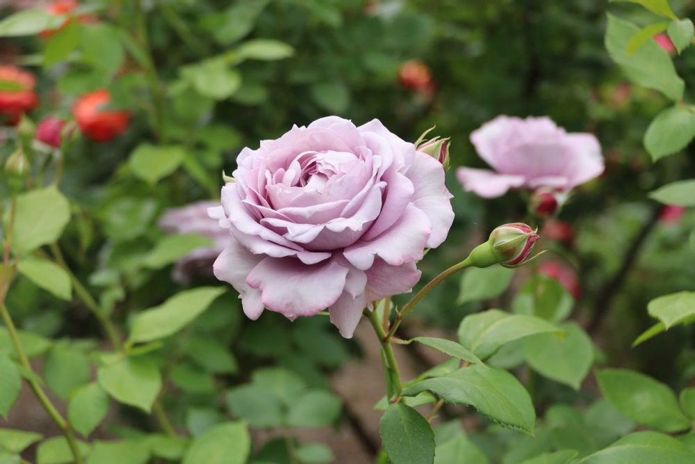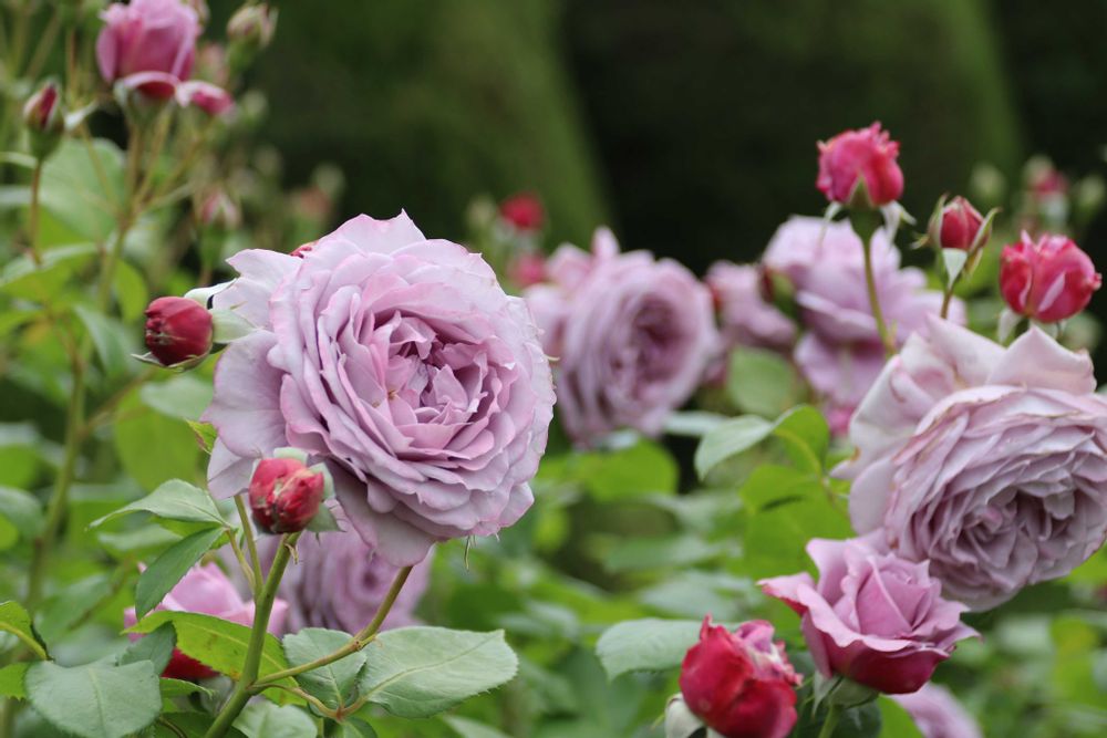 藤色、宝珠弁咲き…バラの花弁の先端が尖った形状で、花弁が波打つ「波状弁」と微妙なバランスで重なり合う咲き方とか。