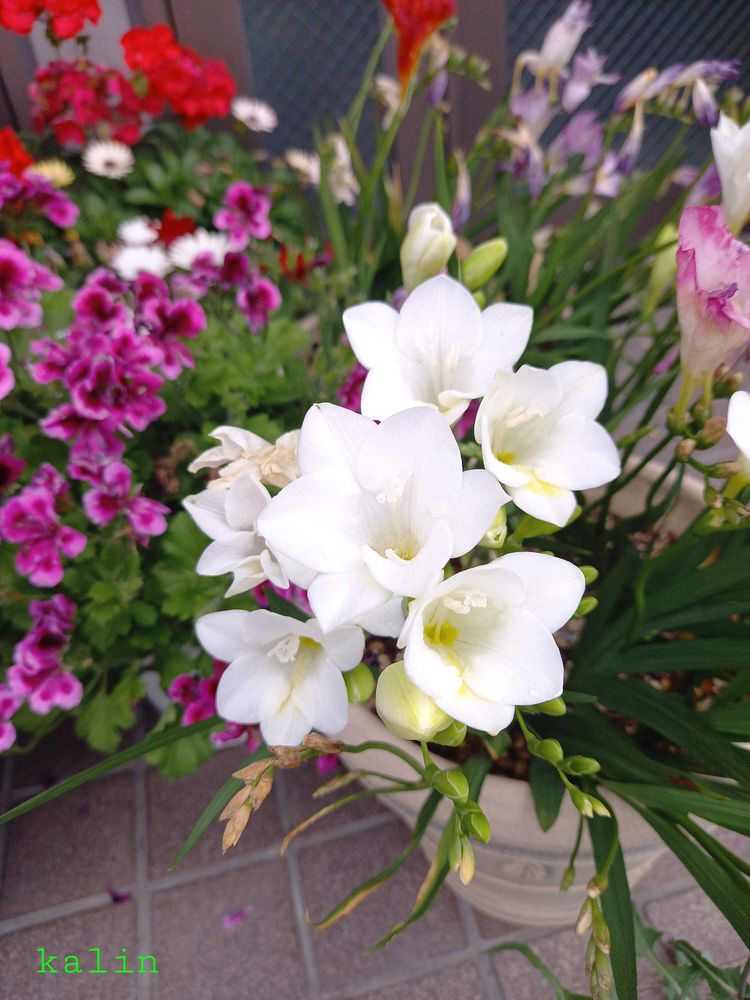 白色シリーズでしたが、5枚なかったので、5枚目に黄色💛のお花がこっそり入っています😅白色のお花は清楚可憐ですね。