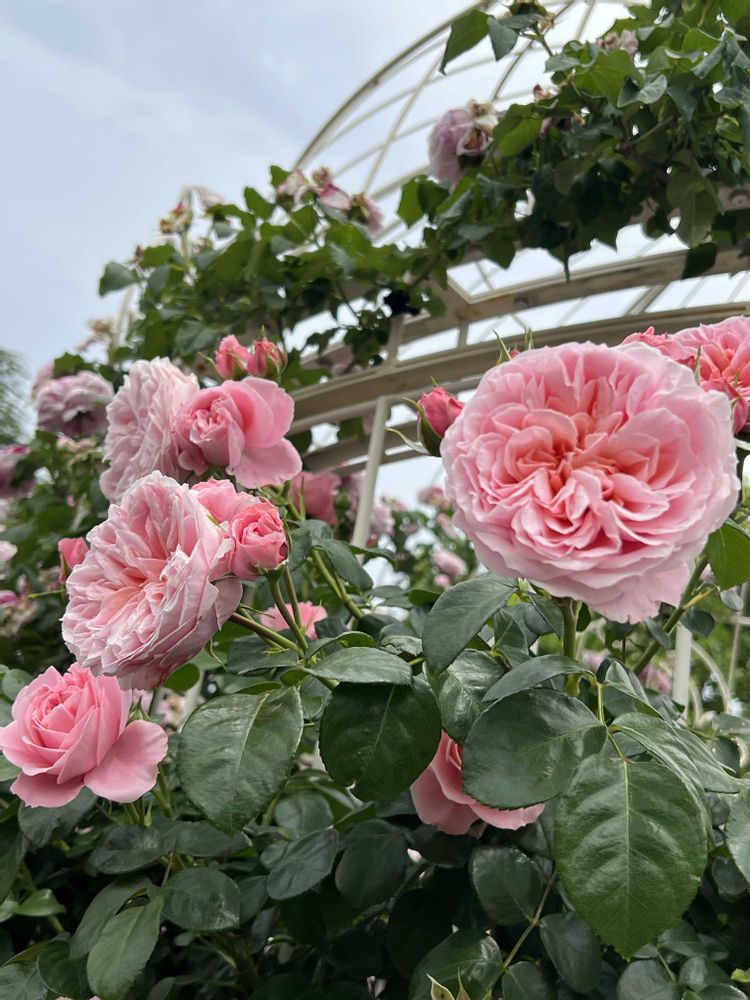 ガゼボに咲く🌸桜色のバラ。一番大好きなバラです🥰