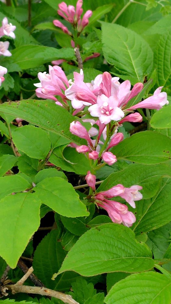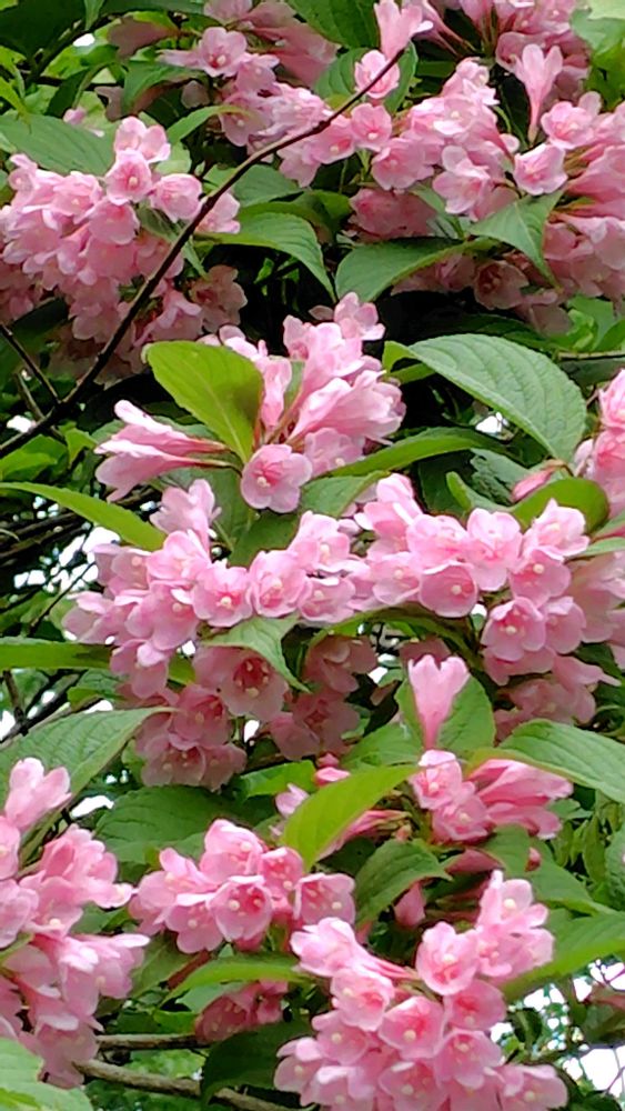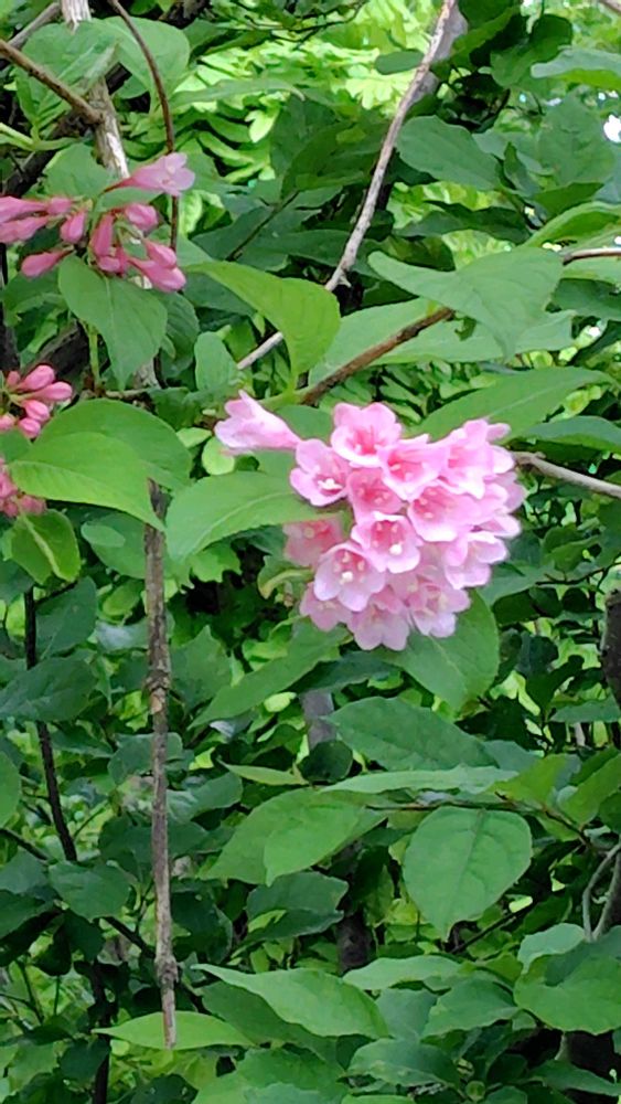新緑が綺麗で道路わきにピンクの花が沢山咲いていました🥰