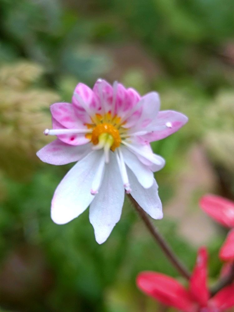 ①②赤葉のユキノシタのお花は八重咲きがたまに出ます。💕🎶🎵🤗