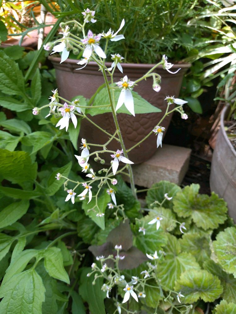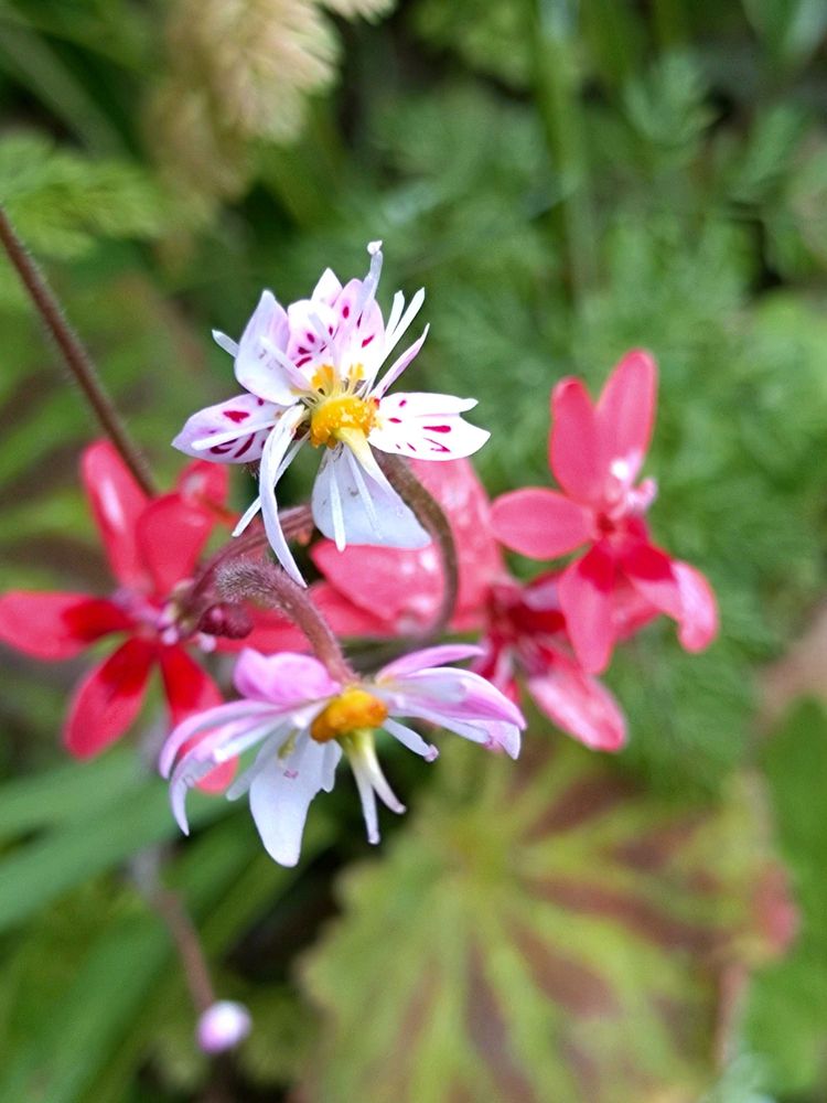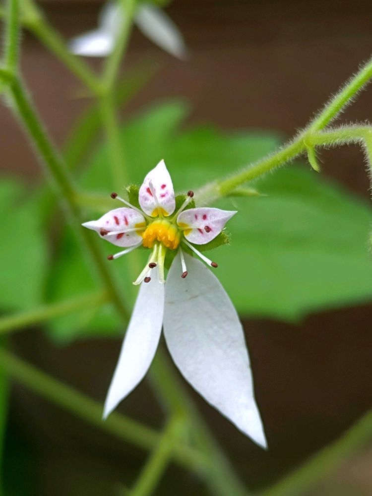 ③④緑葉のユキノシタのお花、普通はこれです。