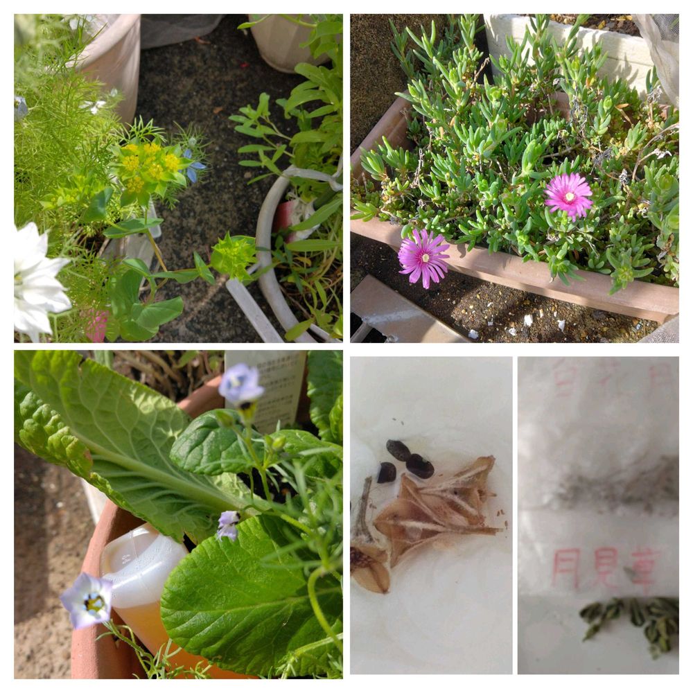 ③ 昨秋採れた夜咲き月見草白花の種が硬くて水に浸けたらぱぁーと鞘が開いて感動的でした。🤗