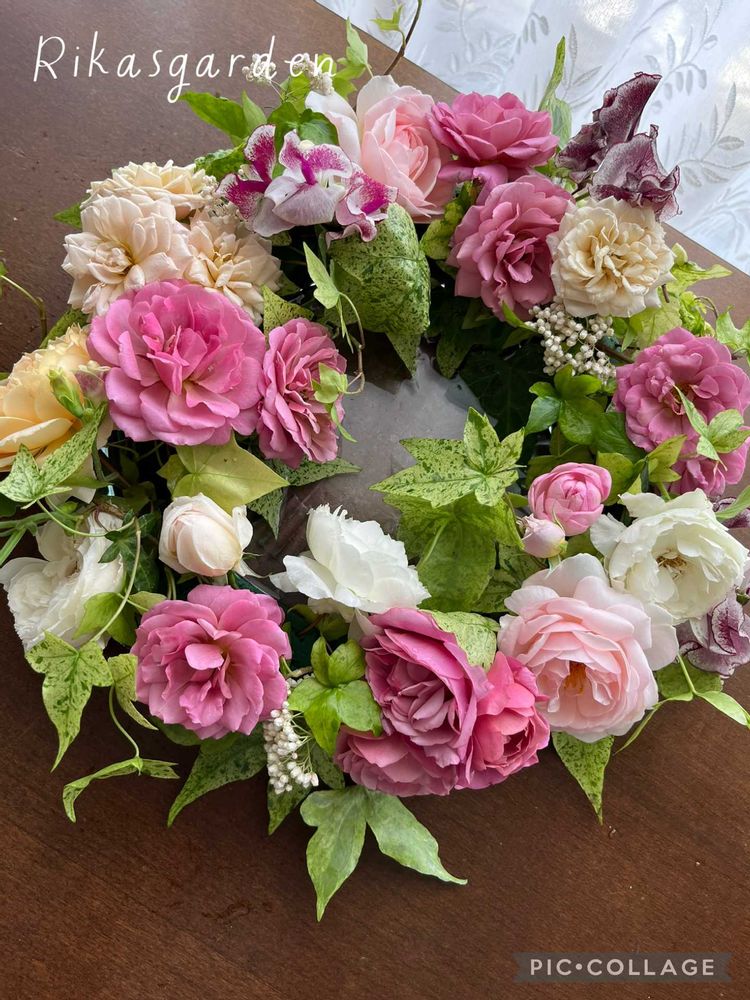 ③あおいといおりが散りそうになってきたので、カットしてリースにしてみました。
