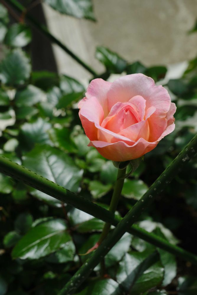 5月中旬。蕾だった2輪も順番に咲きました。咲いたと思ったらまた昨日は雨と風が強かったので、最初の花のように折れてしまわないよう、補強しました。補強のおかげで今回は残ってくれてます。