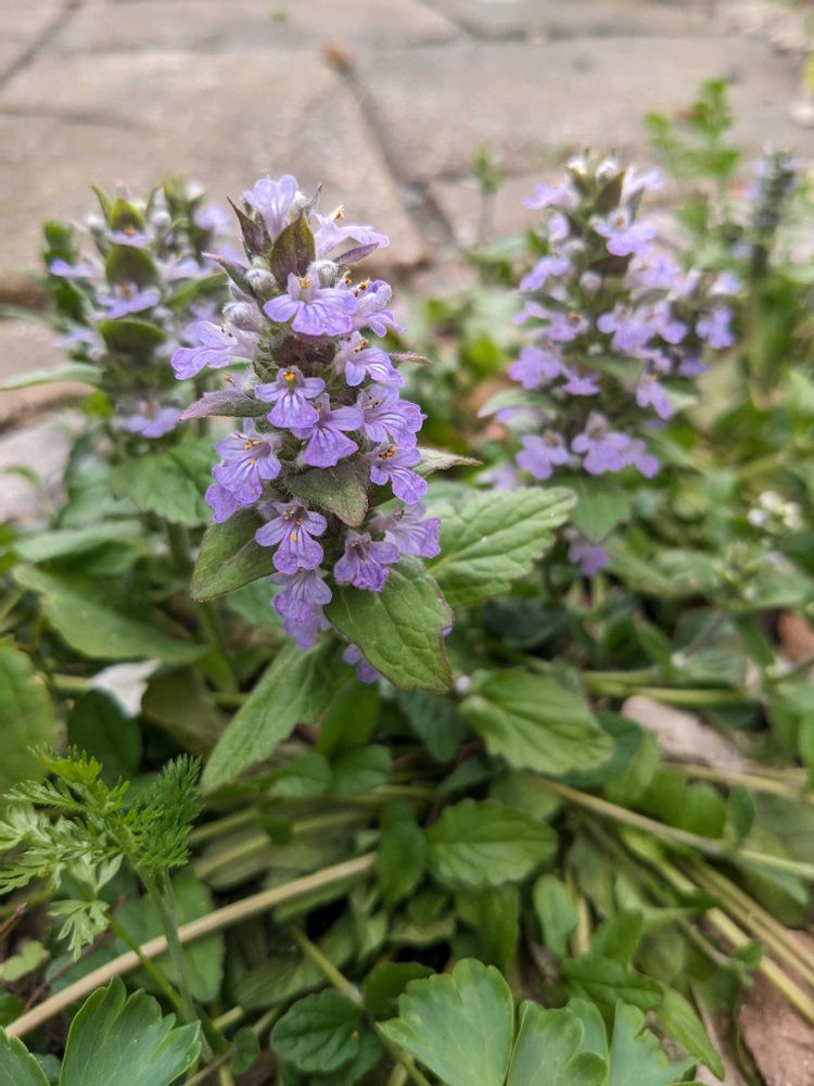 至る所でアジュガが咲き乱れ、春庭を彩ってくれています😊💕