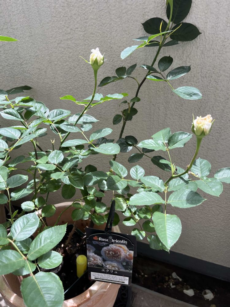 エクリュは、フランス🇫🇷語で生成色…蕾はシャンパン🍾ゴールドのような色ですが、一つ開花してみると花はアイボリー系のみ。今回は力不足気味?でした😢