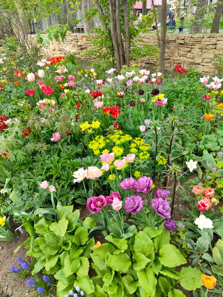 原種や八重咲き、百合咲きやフリンジ咲きとあらゆるチューリップがところ狭しと咲き乱れています