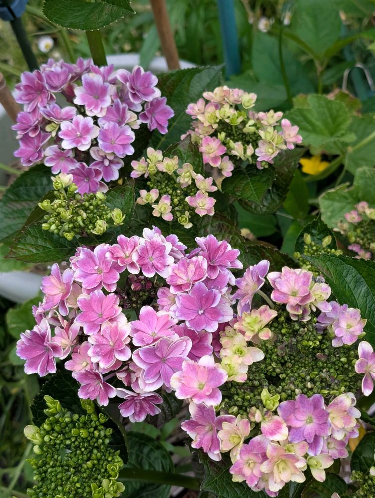 名前のわからない紫陽花もアメジストセージと一緒に咲き始めています