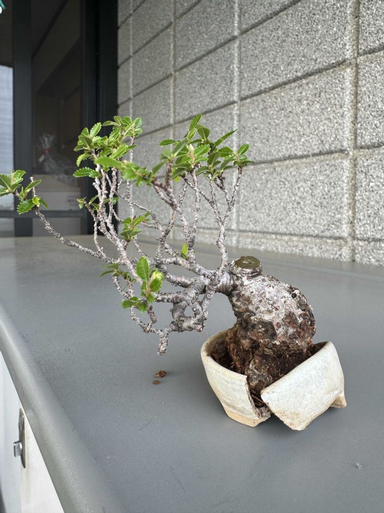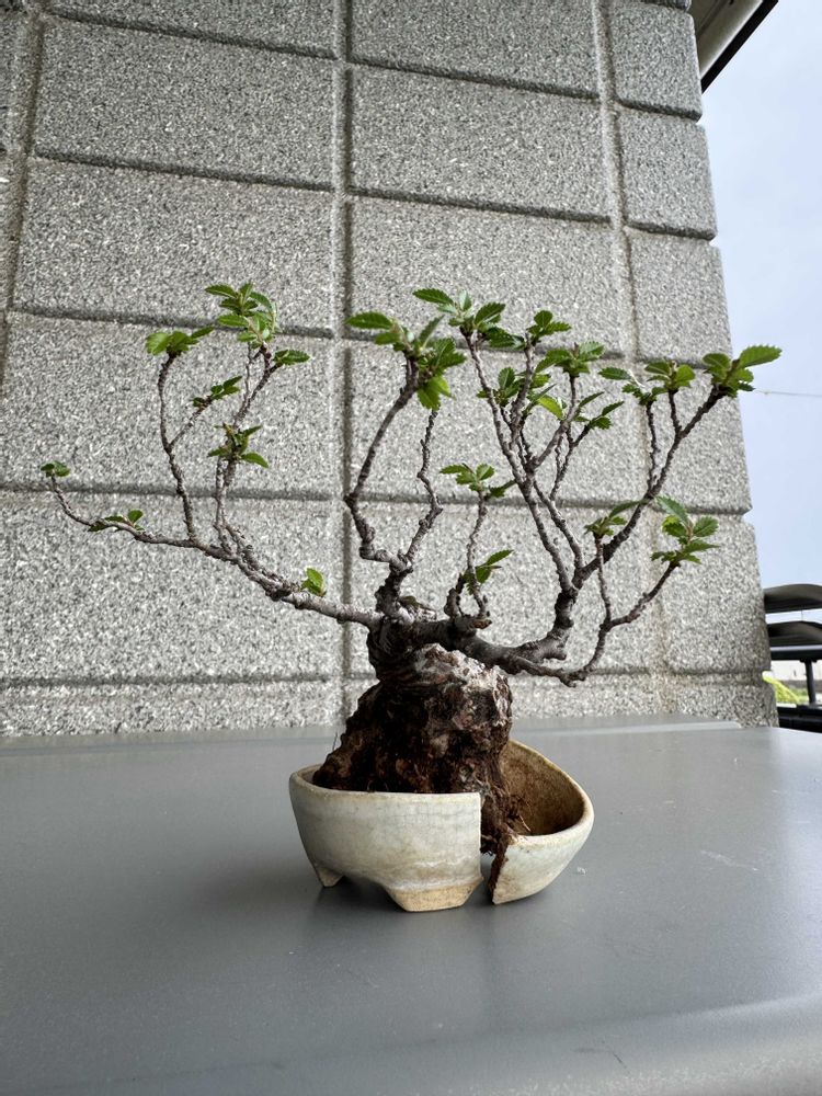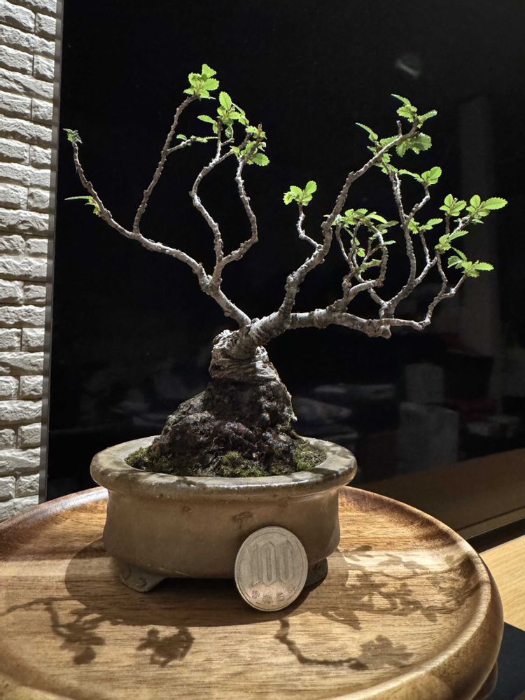 ① 8〜9年前の大盆栽まつりで、女性盆栽家である山崎ちえ先生の店舗ブースにて購入しました。手乗り盆栽です。欅と違って葉が小さいのが特徴ですかね。