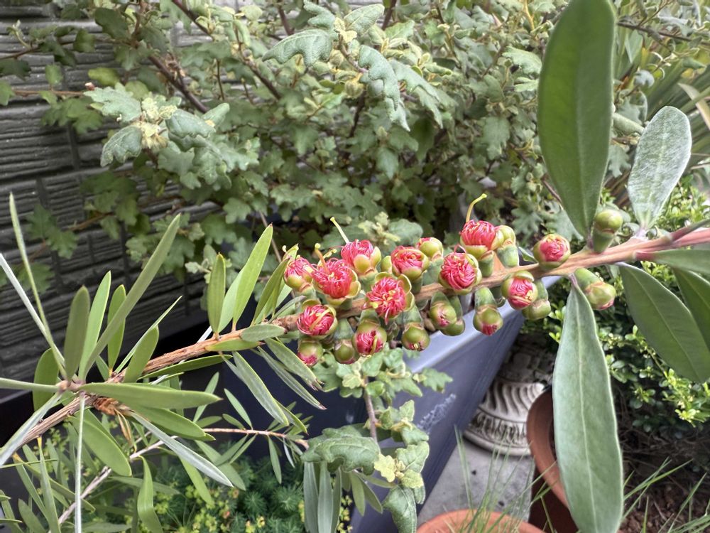 まきぽんさんのカリステモン ピンクシャンパン,鉢植え,ガーデニングの投稿画像