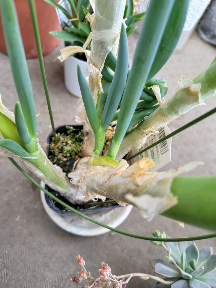 寒い時期に極太葉っぱになり、巨大ネギ坊主も余裕で支えていますが、暖かくなるとぶんげつして増えます。