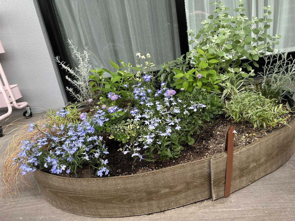 青系の花壇にしたけど、エレモフィラニベア の花が終わったらまた雰囲気が変わったなあ。