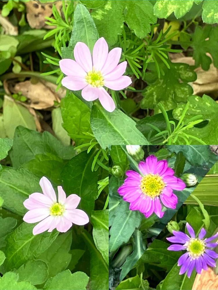 素敵な色のミヤコワスレですね~🩷💜🩵💮