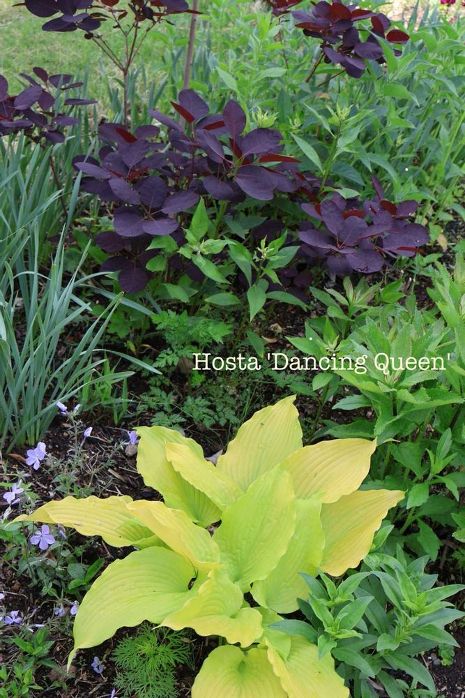 ホスタダンシングクイーンと、スモークツリーのはっきりした組み合わせ✨