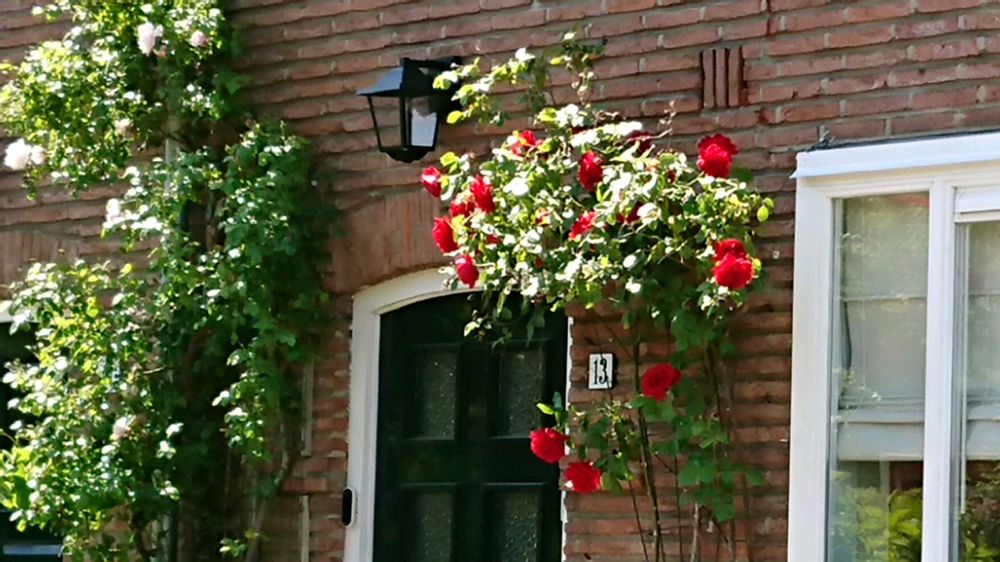 素敵なお家に薔薇のお花がほんとにお洒落ですね🌹