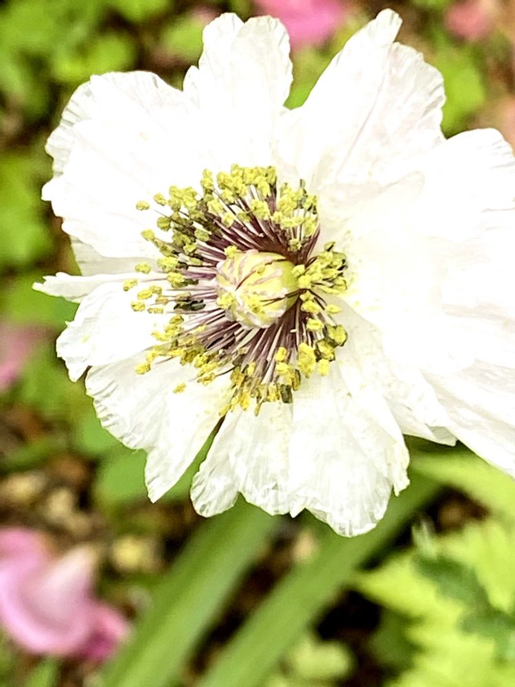 ③まさかのポピーアメイジンググレイさんが白色で咲きました🤦♀️やはり陽が当たらないからかしら😰