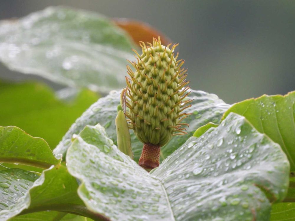 ホオノキ 花後でも雨に打たれて何だか神秘的ですね☔️ステキですよ😍