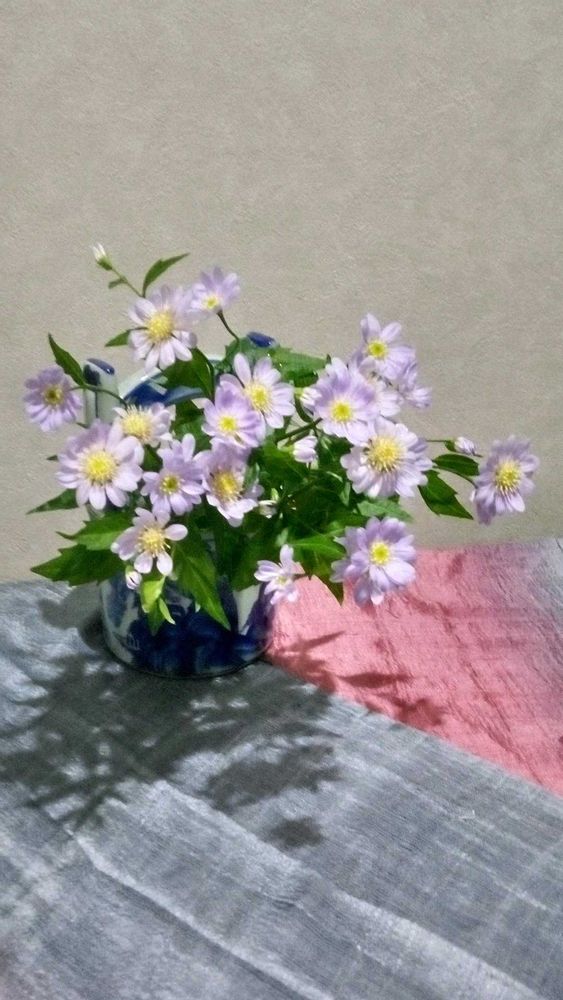 ピンク?淡いピンクの都忘れなんだね🤭🎶我が家は白┅紫は何処かいなくなったな💦