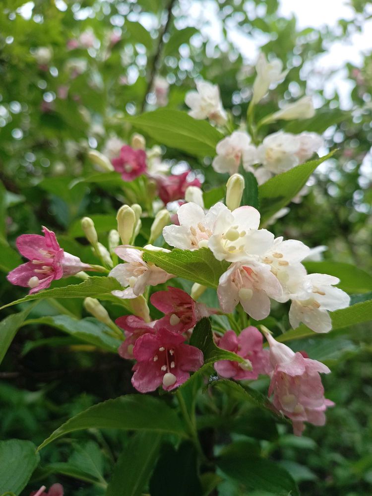 ハコネウツギ〜色々な色が咲いて〜と、思ってたら白花から変化していくんだね〜先日、久しぶりに行った叔母の庭にありました〜ウツギの花って可愛いよね〜🤍💗💕🤍💕