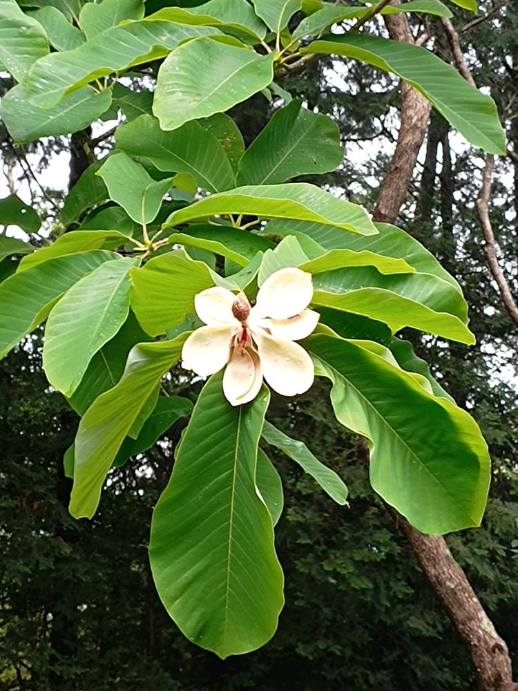 昨日山の公園を歩いてるとホウノキのお花が咲いてるのが見えました。