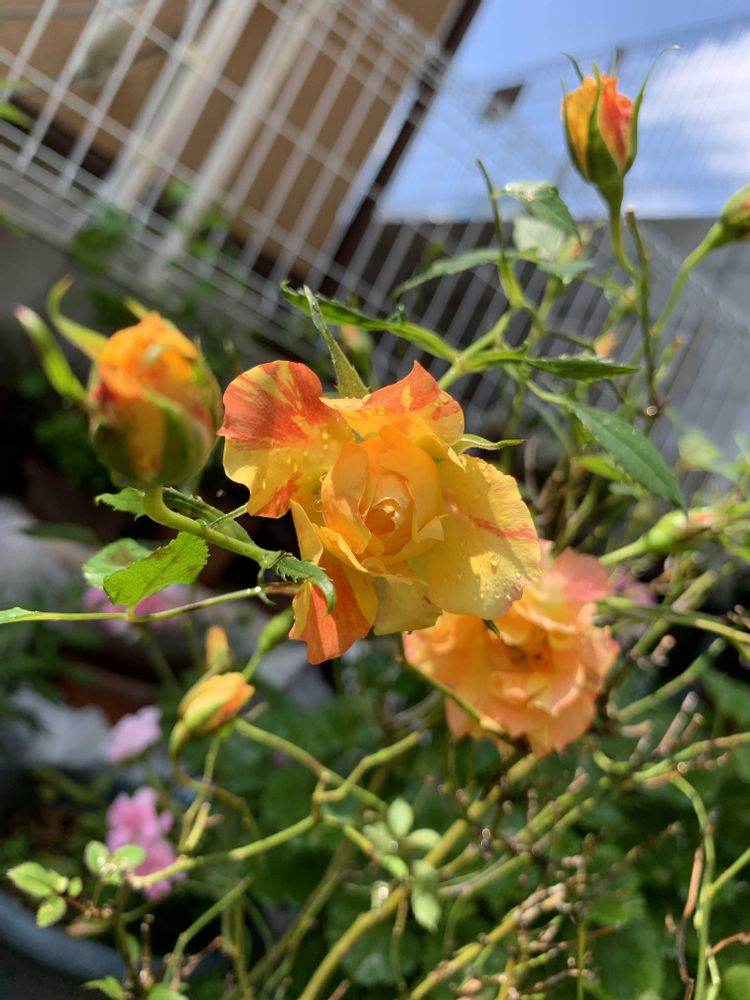 ①②散歩道 ③我が家のバラ(ホーカスポーカス)がやっと咲き始めました ④⑤HC
