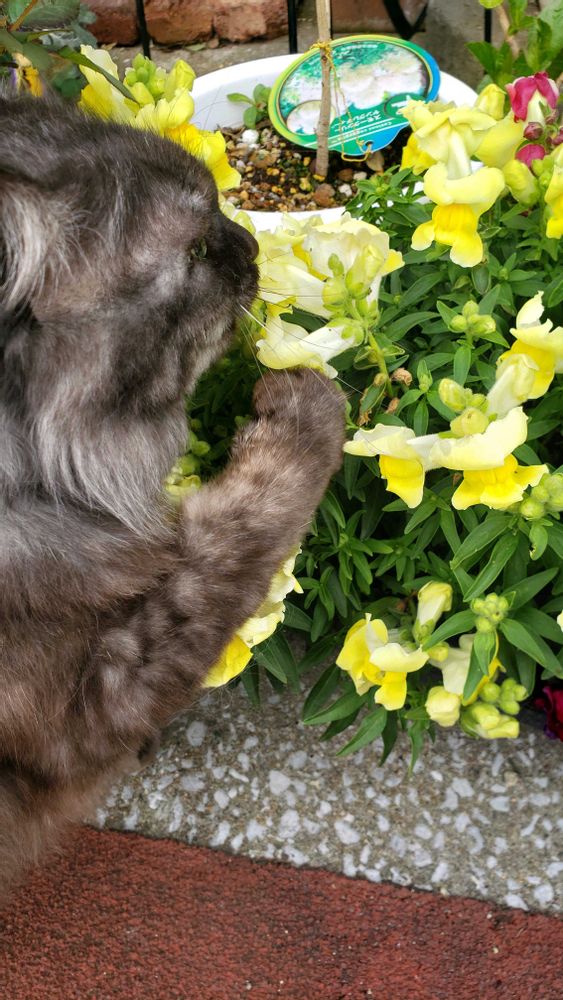 くーは金魚草が好きで引きよせて食べようとするのよ😁