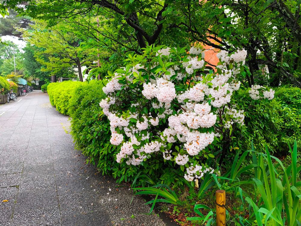 我が家の近くの団地に白いカルミアが咲いていました✨