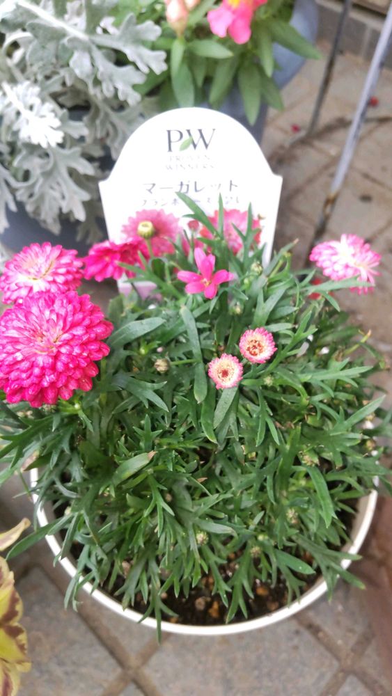 PWマーガレットストロベリーホイップ🍓鉢増しからの開花🌼です✨